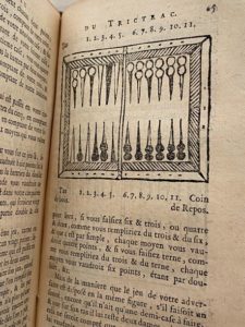 [JEUX] - [ANONYME] - Académie universelle des jeux, contenant les règles de tous les jeux, avec des instructions faciles pour apprendre à les bien jouer. Nouvelle édition, Augmentée du Jeu des Echecs, par Philidor, et du Jeu du Whisk, par Edmond Hoyle […] - Amsterdam ; Aux dépens de la compagnie, 1777 - 2 parties en 1 volume In-12° - Quelques figures in texte gravées sur bois - Reliure de l’époque veau fauve moucheté (1er plat légèrement épidermé, 2nd plat partiellement éraflé, 3 coins usés) - Dos à nerfs orné (1 petit accroc en coiffe supérieure) - Pièce de titre maroquin fauve - Tranches marbrées - Dessins au crayon à la 1ère garde blanche - Bon exemplaire.