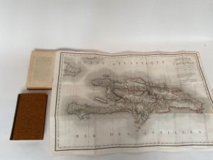 [AMÉRIQUE] - LACROIX (Pamphile de) - Mémoires pour servir à l’histoire de la révolution de Saint-Domingue - Paris ; Pillet Aîné, 1819 - 2 volumes In-8° - Quelques rare rousseurs éparses - Plan du siège de la Crête à Pierrot, 1 grande carte aux contours aquarellés par Lapie, 1 tableau dépliant - Reliure de l’époque demi-basane brune (mors fendus) - Dos lisses ornés, titrés et tomés or (coiffe supérieure du tome II arasée) - Tranches mouchetées de rouge - Édition originale.