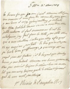 Louise-Marie De France (1737-1787) dernière fille de Louis Xv, elle entra en religion au Carmel de Saint-Denis. 2 L.A.S. « Sr Thérèse de St Augustin R.I. », 2 mars et 28 septembre 1784 ; 1 page et demie in-4.