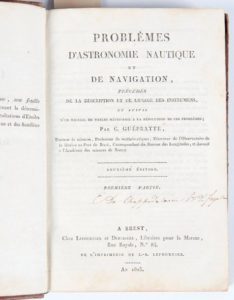 [ASTRONOMIE NAUTIQUE] - GUÉPRATTE (C.) - Problèmes d’astronomie nautique et de navigation, précédés de la description et de l’usage des instrumens […] - Brest ; Lefournier et Deperiers, 1823 - 2 volumes In-8° - Rares petites rousseurs éparses1ère garde blanche du 2nd volume quasi détachée - 4 planches dépliantes in fine du tome I, 2nd volume dédié aux tables, dont 1 dépliante - Annotations manuscrites anciennes aux gardes - Reliure de l’époque basane havane marbrée (2 coins usés, mors frottés et épidermés) - Dos lisses ornés, titrés et tomés or - Tranches marbrées - Ex-libris manuscrit aux 2 volumes : E. de Chappedelaine, lieutenant de frégate - Bon exemplaire.