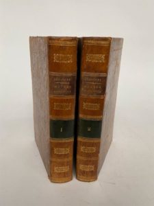 BÉRANGER (Pierre-Jean de) - Œuvres complètes […] Nouvelle édition revue par l’auteur - Paris ; Perrotin, 1847 - 2 volumes In-8° - Des rousseurs éparses - 3 pages de lettre fac-similée et 52 gravures sur acier hors texte entièrement inédites d’après les dessins de MM. Charlet, A. de Lemud, Johannot, Daubigny, Pauquet, … en 1er tirage - Reliure de l’époque basane havane marbrée (quelques petites épidermures aux plats) - Dos lisses ornés - Pièces de titre et de tomaison maroquin taupe et vert sapin - Ex-libris en lettre dorées aux 1ers plats : Mr. Bidault - Bon exemplaire.