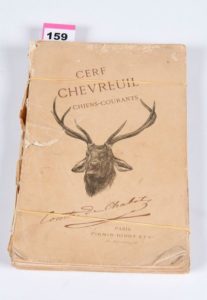 [CHASSE] - CHABOT (Comte de) - La chasse du chevreuil et du cerf avec l’historique des races les plus célèbres de chiens courants - Paris ; Librairie de Firmin-Didot et Cie, 1891 - 1 volume In-4° broché sous couverture illustrée au 1er plat (ouvrage débroché, 1ère couverture déchirée et détachée, dos décollé avec fentes) - De petites rousseurs éparses, manques angulaires aux 1ers feuillets - Dessins des chiens par M. Mahler et figures gravées in et hors texte - Ex-libris au faux titre : Limoëlan 1906 - Vendu en l’état.