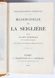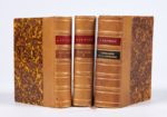 Ensemble de 2 ouvrages en 3 volumes In-18° édités à Paris ; G. Charpentier, Calmann Lévy, collection Petite Bibliothèque Charpentier : VIGNY (Alfred de) - Cinq-Mars ou une conjuration sous Louis XIII - 1882 - 2 volumes - 2 frontispices gravés d’après Jeanniot, 1 lettre dépliante en facsimilé - SANDEAU (Jules) - Mademoiselle de La Seiglière - 1890 - 1 volume - 2 eaux-fortes par Maurice Leloir - Reliures de l’époque quasi-identiques demi-basane fauve - Dos à nerfs ornés de filets et de pointillés - Pièces de titre maroquin bordeaux, havane et noir - Tranches dorées - Bons exemplaires.