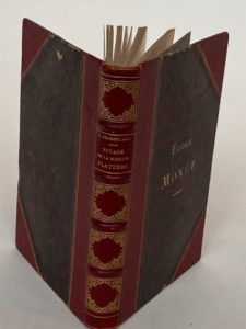 [MAGHREB] - BROSSELARD (Henri) - Voyage de la mission Flatters au pays des Touaregs Azdjers - Paris ; Jouvet et Cie, 1883 - 1 volume In-12° - 40 compositions in et hors texte par E. Juillerat, carte manquante (1 photocopie en feuille a été ajoutée) - Mention en lettres dorées au 1er plat : École Monge - Reliure de l’époque demi-chagrin bordeaux à coins (légers frottements) - Dos à nerfs orné et titré or - Bon exemplaire.