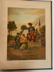 [MILITARIA] - MOUILLARD (Lucien) - Les régiments sous Louis XV - Paris ; Librairie Militaire de J. Dumaine, L. Baudoin & Cie, 1882 - 1 volume In-folio - Fine galerie de ver aux 3 derniers feuillets (table et gardes balnches) - Complet de ses 49 planches en lithochromie reproduisant des drapeaux, étendards et costumes des régiments de 1737 à 1774 et 6 chromolithographies hors texte reproduisant en couleurs des tableaux de maîtres du XVIIIe siècle, auxquels on joint : 2 planches In-4° en couleurs en feuilles provenant d’1 autre ouvrage du même thème - Reluire éditeur cartonnage orné et titré au 1er plat (petit début de fente au 1er plat) - Bon exemplaire.