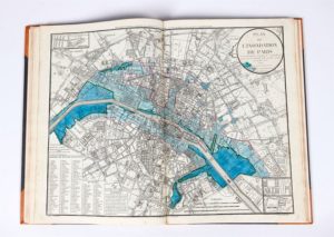 [PARIS] - MAIRE (N. M.) - Atlas administratif de la Ville de Paris, dédié à M. le Comte Anglès - Paris ; Lottin de S.-Germain, 1821 - 1 volume petit In-folio - Titre, [2] pages, et 14 cartes sur double page aquarellées à l’époque et relatives aux arrondissements, circonscriptions, éclairage, nettoiement, chantiers, grandes eaux, carrières, hôpitaux, marchés, aqueducs, égouts, fiacre et cabriolets, ou encore robinets d’incendie - Reliure contemporaine demi-veau fauve moucheté à coins - Dos lisse titré noir en long et pièce de titre papier au 1er plat - Bon exemplaire, bien au complet de ses cartes aux noirs bien profonds et coloris bien frais - Peu courant.