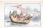 ROBIDA (Albert) - Le vingtième siècle. La vie électrique - Paris ; Librairie Illustrée, [1890] - 1 volume In-4° - 175 compositions in texte et 30 dessins hors texte dont 4 héliogravures (dont frontispice) par Robida - Reliure éditeur signée Engel cartonnage toilé vert au joli décor doré, rouge et noir par Paul Souze (petite auréole inférieure, quelques petits gondolements de la toile au 1er plat, cahiers quelque peu déréglés et quelques planches quasi-détachées) - Édition originale.