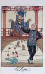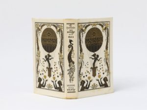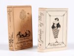 BARBIER (George) - La Guirlande des mois. Cinquième année 1921 - Paris ; Meynial, 1921 - 1 volume In-16° - Vignette couleurs au titre et 6 planches hors texte coloriées au pochoir, bandeaux et culs-de-lampe en sépia - Belle reliure éditeur soie ivoire illustrée or et noir sous jaquette papier illustrée aux plats et au dos, emboîtage éditeur carton illustré à l’identique, gardes décorées, le tout par Barbier - Tranches dorées - Ravissant petit almanach dans 1 remarquable état de conservation, entièrement illustré par George Barbier - La collection complète compte 5 volumes et parut de 1917 à 1921, elle fut interrompue pour cause de contrefaçon à l'étranger.