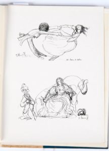 [CARICATURE] - PUVIS DE CHAVANNES - Les caricatures de Puvis de Chavannes. Préface de Marcelle Adam - Paris ; Librairie Ch. Delagrave, [1906] - 1 volume grand In-4° en feuilles sous chemise demi-toile blanche granité illustrée et titrée or (traces de lacets, 1er plat passé) - Plats biseautés - Petits manques angulaires à 3 feuillets en début d’ouvrage - Très nombreuses planches caricaturales en noir, certaines rehaussées en couleurs.