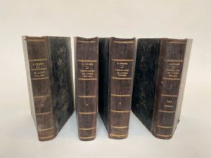 [GUERRES DE L’OUEST] - CHASSIN (Ch.-L.) - Études documentaires sur la Révolution française. Les pacifications de l’ouest. Tome I. La Jaunaye, La Mabilais, Saint-Florent, Quiberon. Tome II. La dictature de Hoche. Tome III. Du Dix-huit fructidor au Concordat et à l’invasion. Tome IV. Table générale - Paris ; Paul Dupont, 1896-1900 - 4 volumes In-8° - 2 cartes dépliantes - Reliure de l’époque demi-basane havane (salie, des frottements aux plats, manque de cuir au 1er plat du tome II, fente partielle au 2nd mors du tome III, des coins émoussés) - Dos lisses ornés, titrés et tomés or - Ex-libris manuscrit : G. Closmadeuc (Chirurgien en chef de l’hôpital de Vannes de 1862 à 1881, archéologue et président de la Société Polymathique du Morbihan), avec la menton au crayon Donné par l’auteur - Bon exemplaire en édition originale.