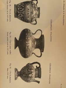 [DOCUMENTATION - FAÏENCE] - ALLINNE (Maurice) - Catalogue des faïences anciennes (Espagne, Italie, France, Asie-Mineure) - Rouen ; Lestringant, 1928 - 2 volumes In-8° : l’1 broché, l’autre en feuilles sous couverture éditeur constituant l’album des planches, le tout sous chemise éditeur demi-toile grise à lacets titrée or au dos (coupes frottées, 1 petit accroc au 1er plat) - Complet de ses 56 planches dont 8 en couleurs - Bon exemplaire.