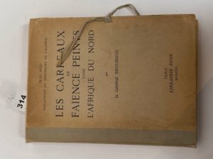 [DOCUMENTATION - FAÏENCE] - BROUSSAUD (Général) - Les carreaux de faïence peints dans l’Afrique du Nord - Pars ; Librairie Plon, 1930 - 1 volume In-4° en feuilles sous chemise éditeur demi-toile grise à lacets - 17 pages de texte et 38 planches au complet dont 14 en couleurs - Bon exemplaire.