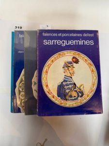 [DOCUMENTATION - FAÏENCE] - Ensemble de 8 volumes grand In-8° édités à Paris par ABC Décor entre 1973 et 1984 : Faïences et porcelaines de l’est : Sarreguemines (1 volume) - Lunéville, Saint-Clément, Niderviller (1 volume) - Argonne, Waly-Lavoye, Clermont, Froidos, Montgarny, Rarecourt, Salvange (1 volume) - Les Islettes (1 volume) - Vosges, Logwy, Toul (1 volume) - Céramiques du Beauvaisis - Faïences du Nord : Saint-Amand, Saint-Omer, Onnaing, Sorrus, Vron - Faïences de l’Auxerrois - On y joint : TABURET (Marjatta) - La faïence de Quimper - Paris ; Sous le Vent, 1979 - 1 volume grand In-8° carré - Soit 9 volumes tous reliés sous jaquettes et abondamment illustrés - Très bon ensemble.