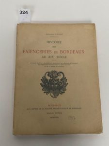 [DOCUMENTATION - FAÏENCE] - NICOLAÏ (Alexandre) - Histoire des faïenceries de Bordeaux au XIXe siècle - Bordeaux ; Aux dépens de la Société Archéologique de Bordeaux, Delmas, 1932 - 1 volume In-folio broché sous couverture rempliée (maque en haut de dos) - 16 planches en phototypie, 4 planches en couleurs, nombreuses reproductions en simili-gravure et 123 dessins de l’auteur in texte.