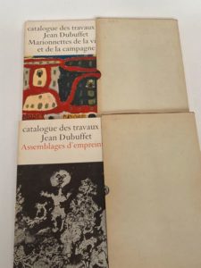 [BEAUX-ARTS] - LOREAU (Max) - Ensemble de 2 volumes grand In-4° édités à [Paris] ; Jean-Jacques Pauvert, 1966, 1968 : Catalogue des travaux de Jean Dubuffet. Marionnettes de la ville et de la campagne. Fascicule I -- Catalogue des travaux de Jean Dubuffet. Assemblages d’empreintes. Fascicule XI - Couvertures à rabats illustrées aux 1ers plats, emboîtages - Titres aux dos - Très nombreuses reproductions d’œuvres de Jean Dubuffet en noir et couleurs in et hors texte - Bon ensemble.