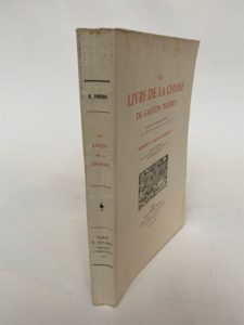 [CHASSE] - BOSSUAT (Robert et André) - Le livre de la chasse de Gaston Phœbus - Paris ; Émile Nourry Éditeur, Librairie Cynégétique, 1931 - 1 volume petit In-4° broché en partie non coupé sous couverture rempliée (légèrement salie en haut du 1er plat) illustrée d’1 vignette - Titre à l’encre rouge et noire - Vignette au titre, et 87 figures d’après les miniatures du manuscrit français 616 de la Bibliothèque Nationale - Mention manuscrite au faux titre : Limoëlan - Très bon exemplaire numéroté sur Alfa satiné (n°523 sur les 1000, tirage total : 1050).