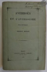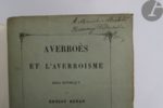 *RENAN (Ernest). Averroes et l'averroïsme. Essai historique. Paris : Auguste Durand, 1852. — …