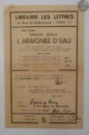*BÉALU (Marcel). L'Araignée d'eau. Paris : Librairie Les Lettres, 1948. — In-4, en feuilles, …