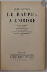 - LE RAPPEL À L'ORDRE. Le Coq et l'Arlequin. Carte Blanche Visites à Maurice Barrès. Le Secret Professionnel. D'un Ordre considéré comme une Anarchie. Autour de Thomas l'Imposteur. Picasso. 1918-1926. Paris : Librairie Stock, Delamain et Boutelleau, [1926]. — In-12, broché.
