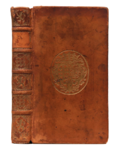 Utrecht, François Galma, 1704. In-12, veau fauve, armoiries au centre, dos orné de pièces d'armes alternées, tranches rouges (Reliure de l'époque).Nouvelle édition du charmant voyage de Chapelle et Bachaumont, suivi d'un mélange de pièces fugitives tirées du Cabinet de Saint-Évremond.