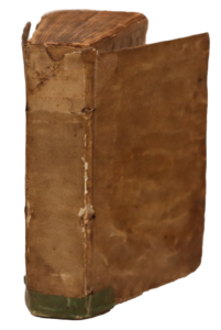 Reliure défraîchie avec légers manques et salissures, pièce de vélin vert contrecollée en queue ; titre-frontispice frotté et empoussiéré, trou de ver traversant touchant quelques lettres, rousseurs.