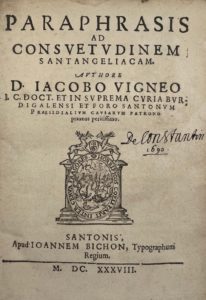 DESVIGNES (Jacques) — Paraphrasis ad consuetudinem santangeliacam.
