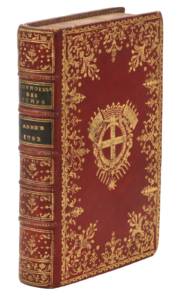 Paris, Imprimerie royale, 1779. In-12, maroquin rouge, roulette en encadrement, large dentelle dorée de fleurs, vases fleuris, petits fers et pastilles, armoiries au centre, dos orné, pièces de titre et d'année de maroquin vert, coupes guillochées, roulette intérieure, tranches dorées (Reliure de l'époque).Édition originale de cette éphéméride de précision, calculée par l'astronome Edme-Sébastien Jeaurat (1725-1803), l'auteur de la célèbre carte des soixante-quatre étoiles des Pléiades.