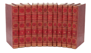 Paris, F.-A. David, 1780-1803. 12 volumes in-8, demi-chagrin rouge avec coins, dos orné, tranches lisses (Reliure du début du XIXe siècle).Édition originale au format in-8 de ce volumineux catalogue d'antiquités recueillies à Herculanum et dans les environs de Naples, conçu sur le modèle de ceux de Caylus et d'Hamilton. Elle a été publiée simultanément au format in-4 et in-8.