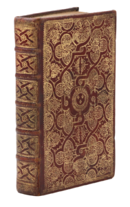 Paris, François Grangé, s.d. [entre 1708 et 1725]. In-8, maroquin rouge, décor de filets droits et courbes et fers filigranés dorés formant compartiments, armoiries au centre, dos orné, dentelle intérieure, doublures et gardes de papier doré et coloré, tranches dorées (Reliure de l'époque).Exemplaire réglé dans une belle reliure à la fanfare aux armes royales.