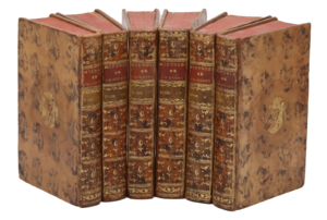 1771. 6 volumes in-12, veau marbré, armoiries au centre, dos lisse orné, tranches rouges (Reliure de l'époque).Première édition française, traduite par Jean-Baptiste Suard sur l'originale anglaise de 1769 et publiée simultanément au format in-4 et in-12.