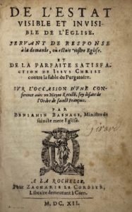 BASNAGE (Benjamin) — De l'Estat visible et invisible de l'Église, servant de response à la demande, où estoit vostre Église, et de la parfaite satisfaction de Jésus-Christ contre la fable du Purgatoire, sur l'occasion d'u