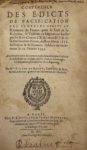 BELLOY (Pierre de) — Conférence des edicts de pacification des troubles esmeus au royaume de France pour le faict de la religion ; et traittez ou reglemens faicts par les rois Charles IX et Henri III, et de la déclaration