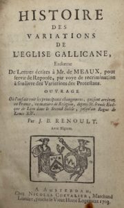 RENOULT (Jean-Baptiste) — Histoire des variations de l'Église gallicane, en forme de lettres écrites à Mr. de Meaux, pour servir de réponse, par voye de récrimination à son livre des Variations des protestans.