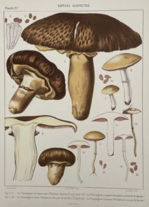 Paris, Octave Doin, 1888. 2 volumes in-4, dont un de texte broché et un atlas en feuilles, portefeuilles imprimés de l'éditeur. Édition originale d'un des beaux atlas de champignons français de la fin du xixe siècle. Elle a paru en dix livraisons de 1885 à 1887.