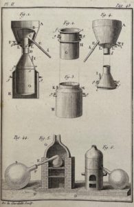 Paris, Pissot, 1774. 2 tomes en un volume in-8, veau marbré, dos orné, tranches marbrées Reliure de l'époqueTroisième et meilleure édition de cet intéressant traité de distillation, illustrée de 6 planches hors texte gravées par Delagardette.