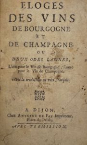 [GRENAN (Bénigne) et Charles COFFIN] — Éloges des vins de Bourgogne et de Champagne, ou deux odes latines, l'une pour le vin de Bourgogne, l'autre pour le vin de Champagne, avec la traduction en vers françois.