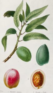 Ce volume renferme 152 planches de fruits lithographiées d'après les dessins de Pancrace Bessa (1772-1846), peintre du Muséum d'histoire naturelle et illustrateur de l'Herbier général de l'amateur, dont 148 planches imprimées en couleurs et retouchées au pinceau et 4 en noir, représentant des pommes, poires, raisins, fraises et autres fruits.