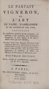 [PLAIGNE (Chevalier de)] — Le Parfait vigneron, ou l'art de faire, d'améliorer et de conserver les vins, contenant la meilleure manière de les préparer, de prévenir et de remédier aux altérations auxquelles ils sont sujets et d