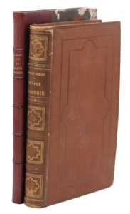 Paris, Belin-Leprieur et Morizot, s.d. In-8, demi-basane marron, dos orné, tranches dorées (Reliure de l'époque).Édition originale de cette intéressante relation de voyage de Saint-Pétersbourg au Caucase en passant par la Finlande, Moscou et Nijni-Novgorod.