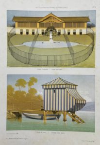 Chacune de ces planches, dont le premier tirage a vu le jour vers 1861, représente trois ou quatre constructions champêtres, telles que cabanes, remises, pavillons, kiosques, maisons de garde, cabines de chasse et de pêche, chalets, serres, bergeries, volières, étables, poulaillers, faisanderies, etc.