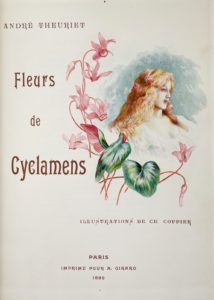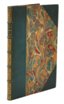 Paris, Imprimé pour A. Girard, 1899. Petit in-4, demi-maroquin vert d'eau, filet doré, dos orné de mandorles orangées et de petits quadrilobes rouges mosaïqués, tête dorée, non rogné, couverture et dos (V. Champs).Édition de luxe, illustrée par André-Charles Coppier de onze eaux-fortes imprimées en couleurs, dont trois hors texte. Le texte est orné d'encadrements floraux coloriés à la main.