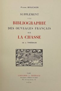 THIÉBAUD (Jules) — Bibliographie des ouvrages français sur la chasse. Paris, Gibert Jeune, 1974. – MOUCHON (Pierre). Supplément à la Bibliographie des ouvrages français sur la chasse.
