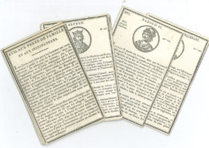 CARTES À JOUER. Jeu de cartes sur l’histoire d’Angleterre (Paris, Renouard, [1807]). Jeu de 46 cartes, chacune avec le portrait gravé d’un roi d’Angleterre et son histoire imprimée, « destiné à l’instruction de la jeunesse » ;...