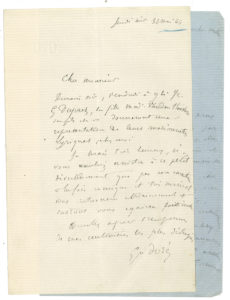 leurs marionnettes lyriques, chez moi ». Il convie Vitet à assister à « ce petit divertissement qui par son caractère à la fois comique et très musical vous intéressera certainement et surtout vous égaiera »… – Dimanche matin. Il le convie à la représentation chez lui de « deux petites comédies jouées par d’excellents artistes », Mlles Devoyod et Damain, et Saint-Germain…