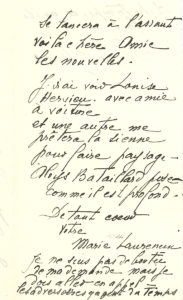 Marie LAURENCIN (1883-1956). L.A.S., 25 juillet 1953, à une amie ; 2 pages et quart in-12. Sur son procès pour récupérer l’appartement dont elle a été expulsée. [Expulsée en 1944 de son appartement jugé trop vaste pour deux personnes,...