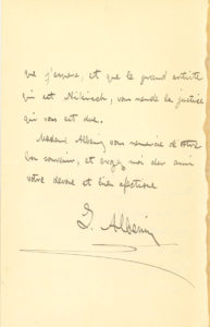 la breche, et lutant pour la bonne cause, saisissant la moindre petite ocasion ; je souhaite que celle qui nous ocupe, done les bons resultats que j’espere, et que le grand artiste qui est Nikisch, vous rende la justice qui vous est due »…