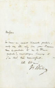 Hector BERLIOZ (1803-1869). L.A.S., à Messieurs Escudier, directeurs de la France musicale ; 1 page in-8, adresse. « Je donne un concert Dimanche prochain » ; il les prie de l’annoncer dans la France musicale.