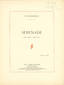 [René CHALUPT]. 10 partitions de musique imprimées avec dédicaces a.s. à René Chalupt ; in-4 ou in-fol., brochées. Fred BARLOW, Ave Maria (Chester, 1919). Pierre-Octave FERROUD, Sérénade pour le piano à 4 mains (Durand, 1927) et Amazones...