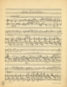 Louis DUREY (1888-1979). Manuscrit musical autographe signé, Le Vivier, 1927 ; 3 pages in-fol. Mélodie pour voix et piano, sur un poème de René Chalupt : « En le frais asyle nageant »… À 4/4, elle est marquée assez Lent et compte 28...
