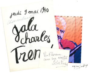 signé, 1940). Page impr. d’Intermezzo de Giraudoux, dédicacée par J. Giraudoux, Louis Jouvet, et les acteurs de la pièce (Pierre Renoi, Valentine Tessier, etc.). Cartes de visite a.s. par Marie Casarès, F. Coppée, Robert Enrico, Eduardo de Filippo, Auguste Lumière, Léon Zitrone… Plus cartes de Giraudoux et Jouvet, et une photo de Pierre Blanchar (fausse signature).